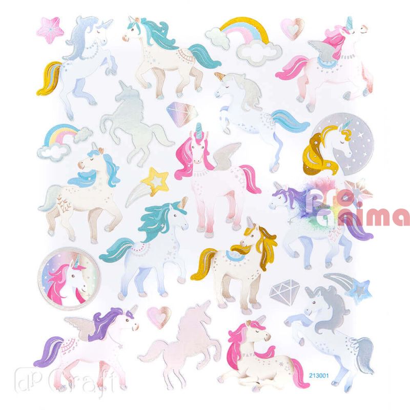 Стикерите с блестящ ефект "Еднорози" са подходящи за изработка на картички, скрапбук албуми, подаръчни опаковки, домашен декор, аксесоари и за детски творчески проекти.